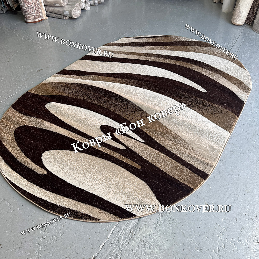 Ковер Карпет New Дизайн 06 Овальный станет привлекательным дополнением интерьера, оформленного в современном или классическом стиле. Мягкое, но прочное, ковровое покрытие обеспечивает тепло- и шумоизоляцию, отличается длительным сроком эксплуатации, пожаробезопасностью, экологичностью и высокой износостойкостью, является отличной гарантией от повышенной влажности в комнате и утеплителем для холодного пола. Благодаря качеству материалов, ковер не деформируется, сохраняет первоначальный вид под тяжестью предметов мебели. За его поверхностью легко ухаживать.