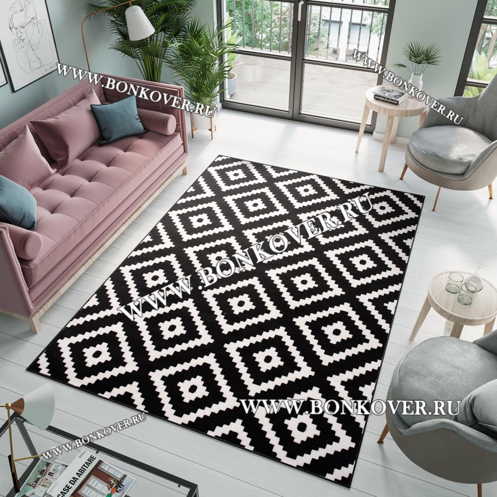 Ковер скандинавский черно-белый станет идеальным дополнением интерьера, оформленного в современном или классическом стиле. Мягкое, но прочное, ковровое изделие обеспечивает тепло- и шумоизоляцию, отличается длительным периодом эксплуатации, надежностью, экологичностью и высокой износостойкостью, является отличной гарантией от повышенной влажности в помещении и утеплителем для холодного пола. Благодаря качеству материалов, ковер не деформируется, сохраняет первоначальный вид под тяжестью предметов мебели. За его поверхностью легко ухаживать.
